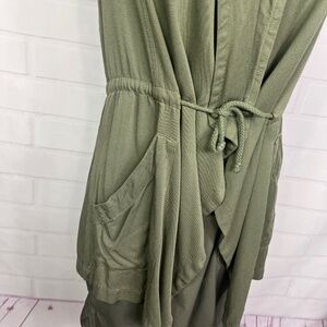 New condition. Cool green activewear dress. With pockets! Size Medium. Approximate measurements in inches when laid flat: chest 19 across pit to pit, full length 36. Photographed on and size small dress form. I've included pics of the vest I bought to go with it, which will be available in a separate listing.
