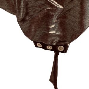 Size M, lightly padded shoulders, grommet closure at crotch.