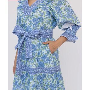 NWOT ISLA PAYAL Cornwall Maxi - Mughal Garden Blue, $218 XS no belt