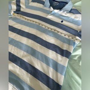 NWOT IZOD Performance Stretch XL Polo Shirt Men's Dark & Light Blue and White Striped. Spread collar. Button closure. Embroidered logo. Trimmed sleeve. Please see pictures for measurements.