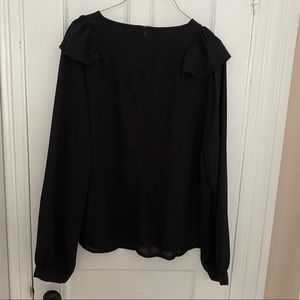 Beautiful blouse with ruffle detailing on the front and shoulders. Zipper back. Lined. Great condition!