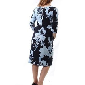 NWOT Inc. Black-Blue dress, size M. 95% polyester and 5% spandex. Made in Taiwan. Jewel neck, 3/4 sleeve, sheath Harem, knee length.