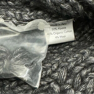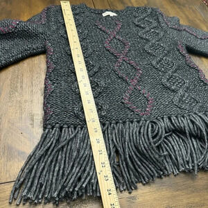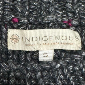 NWOT Indigenous Fair Trade Peru alpaca cotton sweater. Small. 50% alpaca, 46% organic cotton, 4% wool. Charcoal gray cable knit with berry colored accent. Front detail at bottom, crew neck. This is thick and warm but soft and flexible. Purchased for $150, never worn. Smoke free clean home. See pictures for approximate measurements.