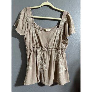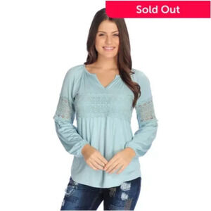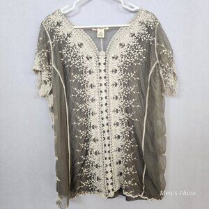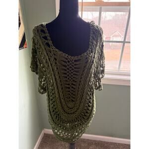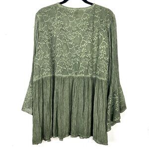 NWOT Indigo Thread Co Lace Bust Bell Sleeve Crepe Knit Top Olive Green 2X cg