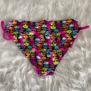Inmocean string bikini bottoms w/ multi colored skulls. I have the top & it’s been my go to bikini top for a couple years now.