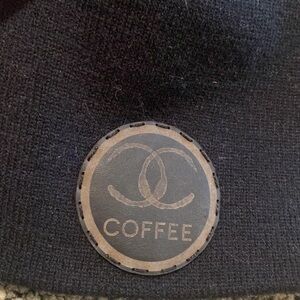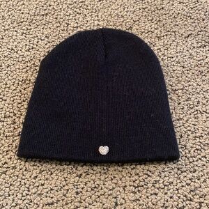 NWOT Inspired Leather Patch Knit Black Beanie with Rhinestone Heart