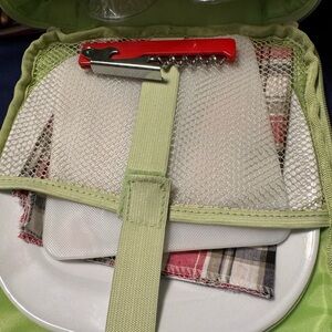 NWOT Insulated Picnic Tote Bag with a blanket and dinnerware.