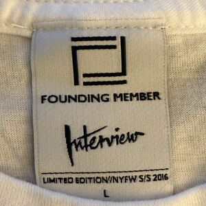 NWOT Interview Magazine Founding Member Limited Edition Tee Shirt. Size Large.