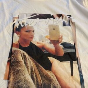 NWOT Interview Magazine founding member limited edition NYFW S/S 2016 white short sleeve cotton tee shirt with graphic of cover shot from September 2026.