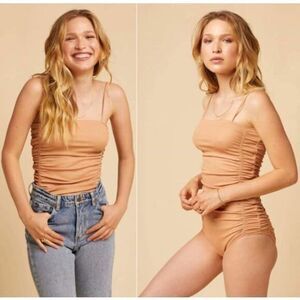 NWOT Intimately Free People On Your Side Ruched Bodysuit in nude, L