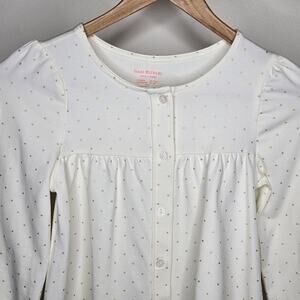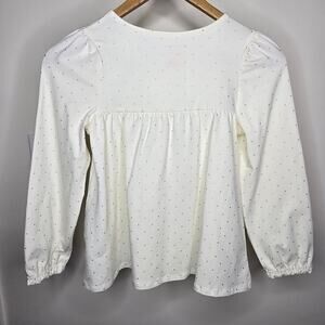 NWOT Isaac Mizrahi Cream & Gold Polka Dot Button Down Long Sleeve Shirt Size 7/8