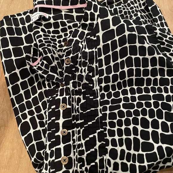 NWOT Isaac Mizrahi Live Black White Mandarin Collar Pullover Cotton Blouse 2X