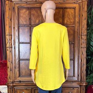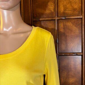 NWOT Isaac Mizrahi Live! Yellow Pima Cotton 3/4 Sleeve Side Slit Scoop Neck Top