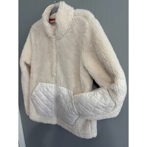 NWOT Isaac Mizrahi Sherpa Fleece Jacket Women Cream Zip Quilted Pockets XXS