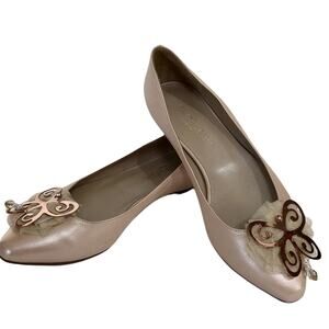 NWOT Italo Balestri Blush Pink Pointed Toe Butterfly Bead Tulle Ballet Flats 37
