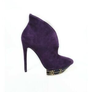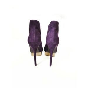 NWOT Ivy Kirzhner Purple Suede Gold Platform Stiletto Ankle Booties $850 Size 6
