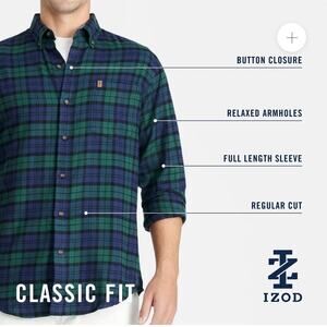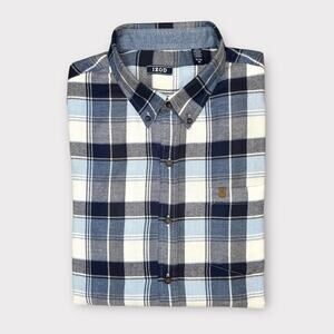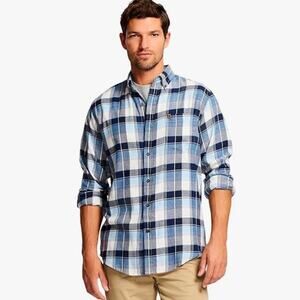 Izod Men's XL Stratton Flannel Blue Plaid Button-Down Shirt Long Sleeve