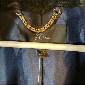 This is a NWOT J.Crew black soft teddy sherpa jacket with a dark blue lining