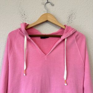 NWOT J. Crew Garment Dyed V-Neck Cotton Terry Hoodie Larkspur Pink *FLAW*