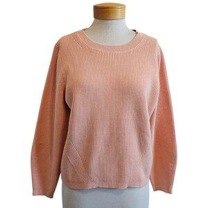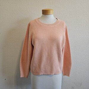 NWOT J Crew Peach Ribbed Stretch Crewneck Chunky Knit Relaxed Casual Sweater S