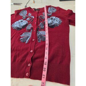 NWOT J. Crew Sequin Floral Embroidered Jackie Cardigan Small Red Unique Elegant