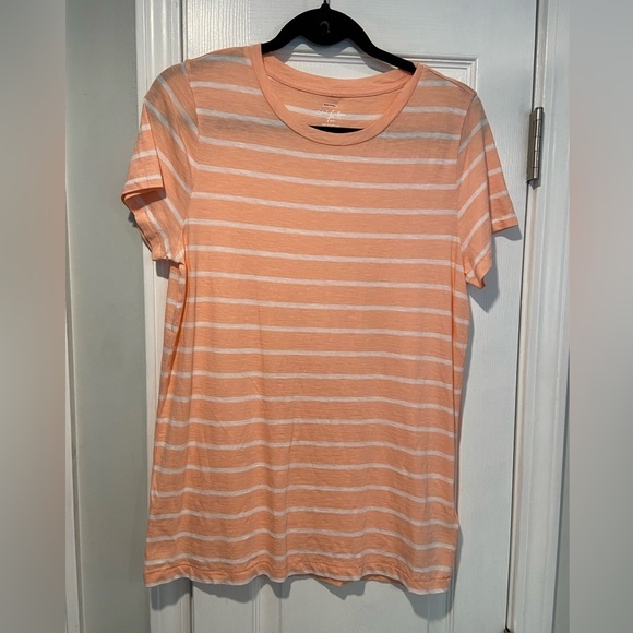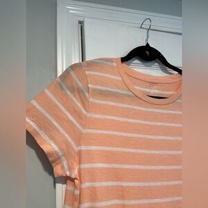 NWOT J. Crew Size L Coral Stripe Slub Tee Shirt Crew Neck Short Sleeve L