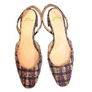 NWOT J. Crew Tweed SlingBack Pump Block Heel Sandal Slip On Sz 9