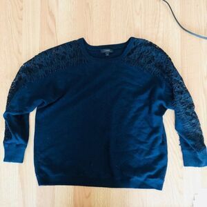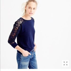 New J. Crew Women's Crewneck Sweater Edged Lace Blue Size L
