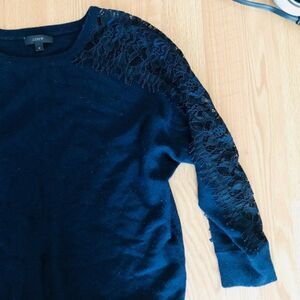 NWOT J. Crew Women's Crewneck Sweater Edged Lace L Large Wool Super Soft