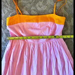 Brand new without tags, perfect condition, never worn! This maxi dress by J. Crew is tiered in various shades of pink and orange (which they call "pink sherbet") and comes in a size 2. This dress features adjustable straps, a smocked back, side pockets, maxi length, a colorblock, tiered design and is 100% cotton. It is fully lined, has a square neck and a side hidden zipper.