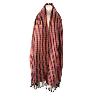 NWOT J Crew Wool Blend Scarf Brown Navy Pink Geometric 22"x90"