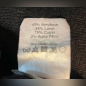 49% acrylic, 34% wool and 17% cotton and other fibers