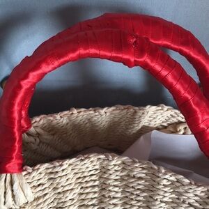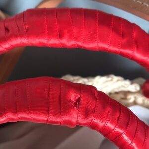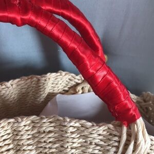 ****This bag originally had yarn of different colors around the handles, I bought it without the yarn and I added the red ribbon, more durable than the yarn IMHO.. Please look closely at the pictures of the handles.