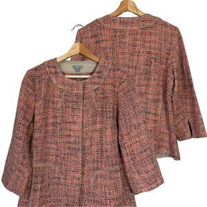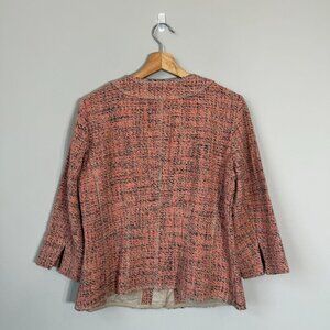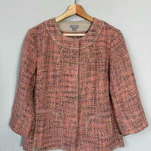 NWOT J. Jill 3/4 Sleeve Tweed Blazer Jacket Women's Small Pink Tan Career Preppy