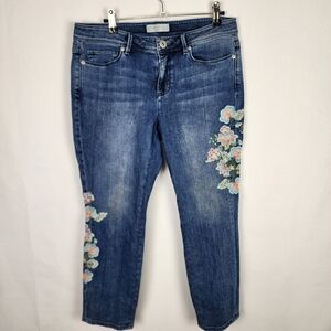 NWOT J Jill Authentic Fit Cropped Floral Embroidered Jeans SIZE 8