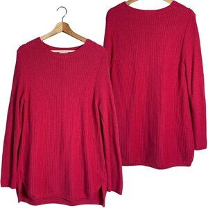NWOT J. Jill Chunky Knit Sweater Pullover Tunic Womens Medium Pink Crewneck Cozy