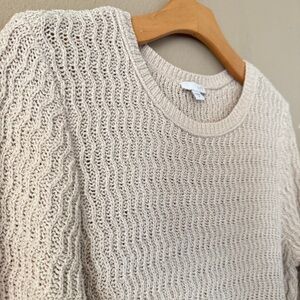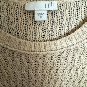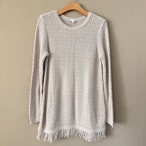 NWOT J. Jill Cream Crew Neck Ribbed Texture Sweater with Fringe Size M