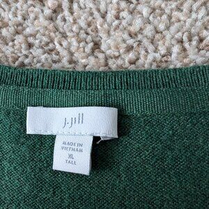 This item: washed, laid flat to dry, never worn sweater from j Jill, size XL Tall.