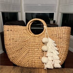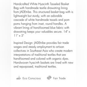 NWOT JADEtribe Beach Basket Large Tassel White Handmade Resort Coastal Vacation