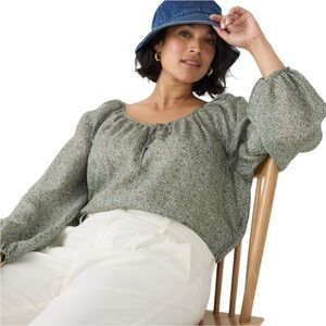 NWOT J.Crew Drapey Tie Front Top in Green Country Floral M