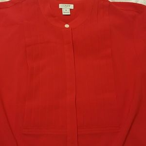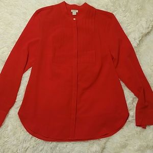 NWOT! Jcrew Factory Drapey Tuxedo Top in red(dark poppy on Jcrew factory website). Size M. 100% polyester. Pin tuck tuxedo details with hidden buttons. Never been worn. Machine wash cold.