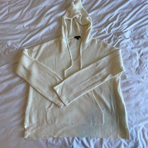 NWOT J.Crew Ribbed Cotton Cashmere Pullover Hoodie Sweater in Cream - L