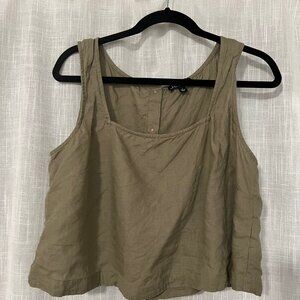 NWOT J.Crew Squareneck Button-Back Linen Top in Dusty Fatigue, Size Large