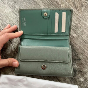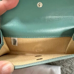 Fabulous goat leather wallet in rare color / limited edition 'verdigris.' This wallet has never once been used, the delicate two-tone is beautiful.