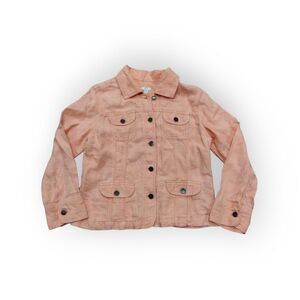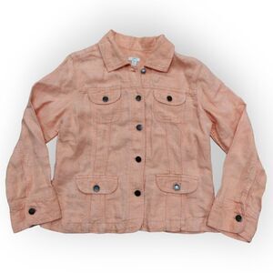 J.Jill 100% Linen peach salmon pink jacket size MP NWOT