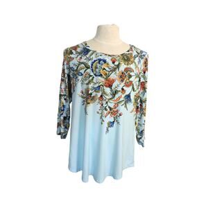 This beautiful NWOT JM Collection tunic top is the perfect addition to your wardrobe! The light blue background is adorned with a vibrant floral design, making it a cheerful and stylish choice. The half sleeves add a touch of elegance, making it suitable for both casual and semi-formal occasions.