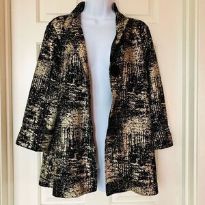 Shine by day or night in this ultra-stylish jacket from JM Collection, a sleek look in a sophisticated metallic print.