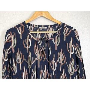 NWOT JODIFL Navy Blue Cactus Long Sleeve Western Tunic Blouse Sz M Southwest Top