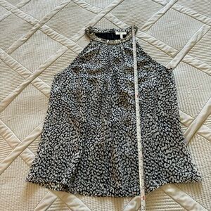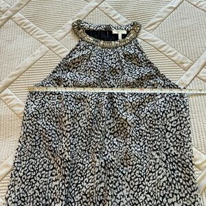 NWOT JOIE Beaded Halter neck Tank Top Sz XS black gray & white patterned chiffon