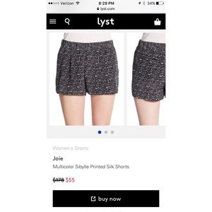 NWOT JOIE Sibylle 100% silk pattern shorts.